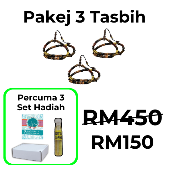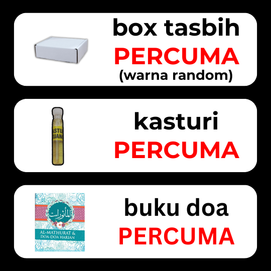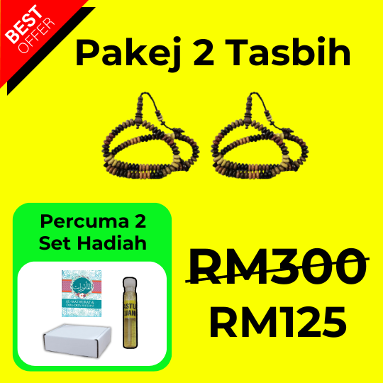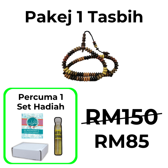 Untuk menjaga tasbih ini, elakkan dari terkena air atau tempat yang terlalu lembap untuk memastikan kayu tidak rosak.