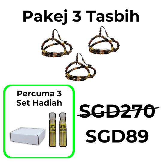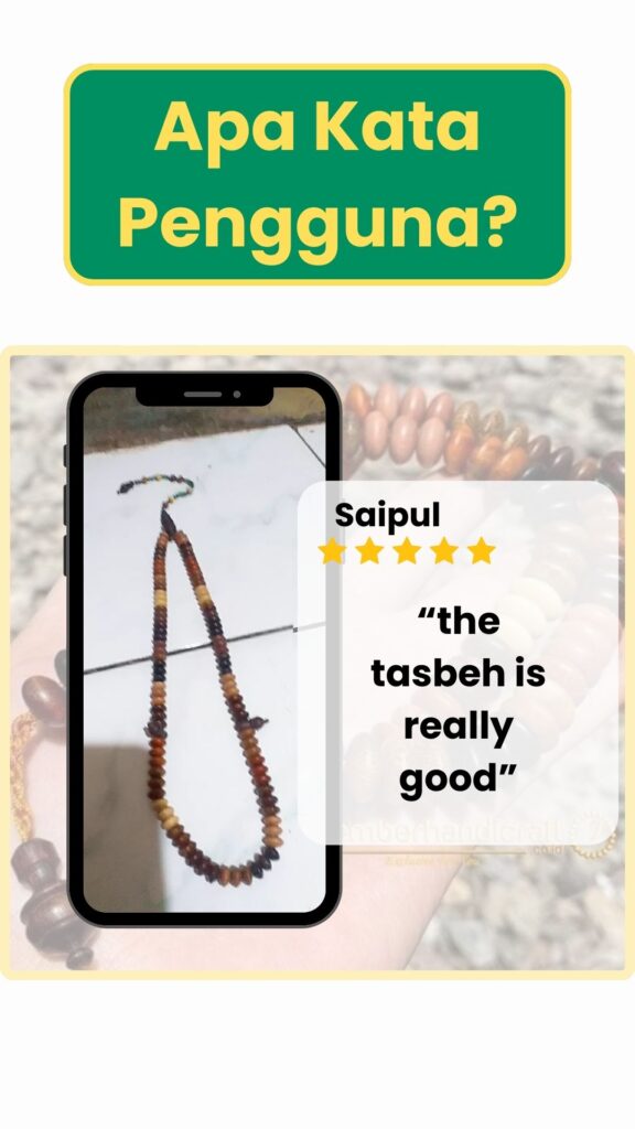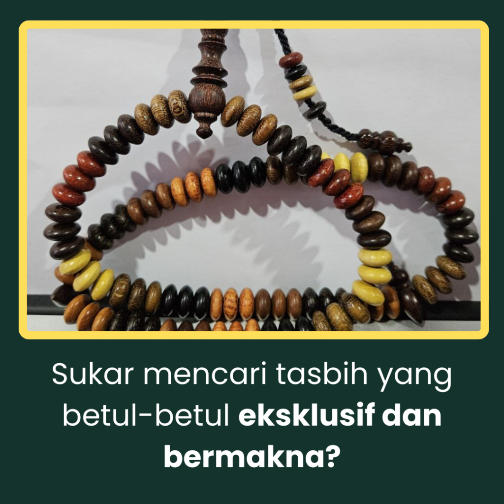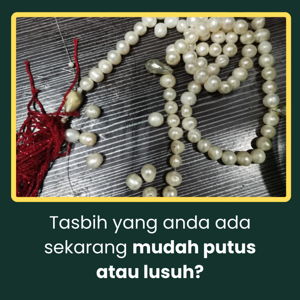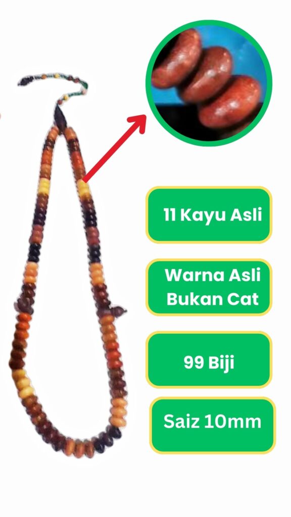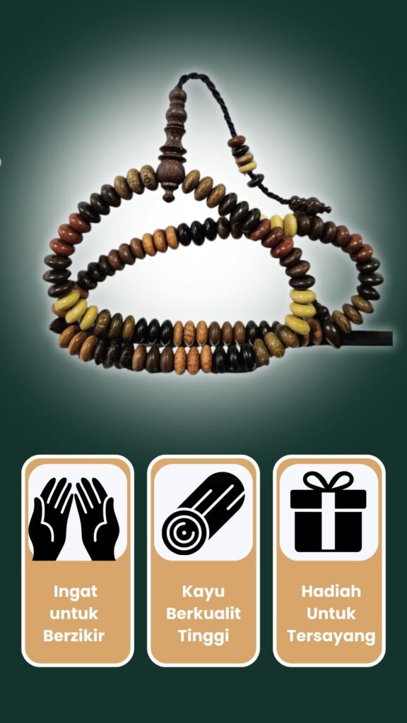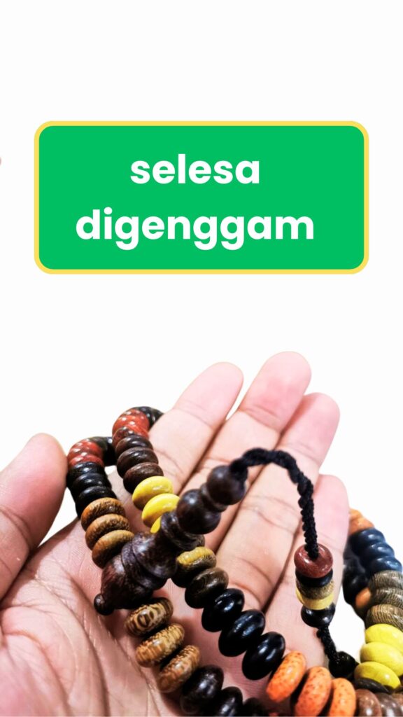 Untuk menjaga tasbih ini, elakkan dari terkena air atau tempat yang terlalu lembap untuk memastikan kayu tidak rosak.